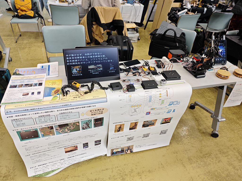 国学院大学で開催された「介助つきコミュニケーション研究会」で講演をさせて頂きました。デバイス開発についての講演とヨミトリ君操作体験を実施しました。会場参加の方、ZOOM参加の方 ご参加ありがとうございました。
